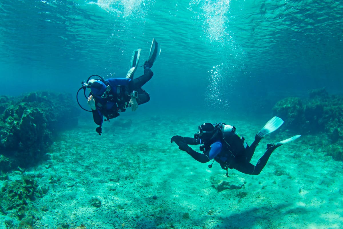 ¿Nunca habías buceado con equipo Scuba antes? Aquí puedes empezar desde cero. Dictamos nuestros cursos en piscinas naturales. Al principio parados en la orilla con el agua no más arriba que el pecho. De forma que si te arrodillas y tienes el equipo puesto, ya estás buceando. Hacemos un pequeño paso a la vez. Y si te gusta, no te detengas. Quien sabe. Tal vez en poco tiempo puedas transformarte en Divemaster o Instructor.